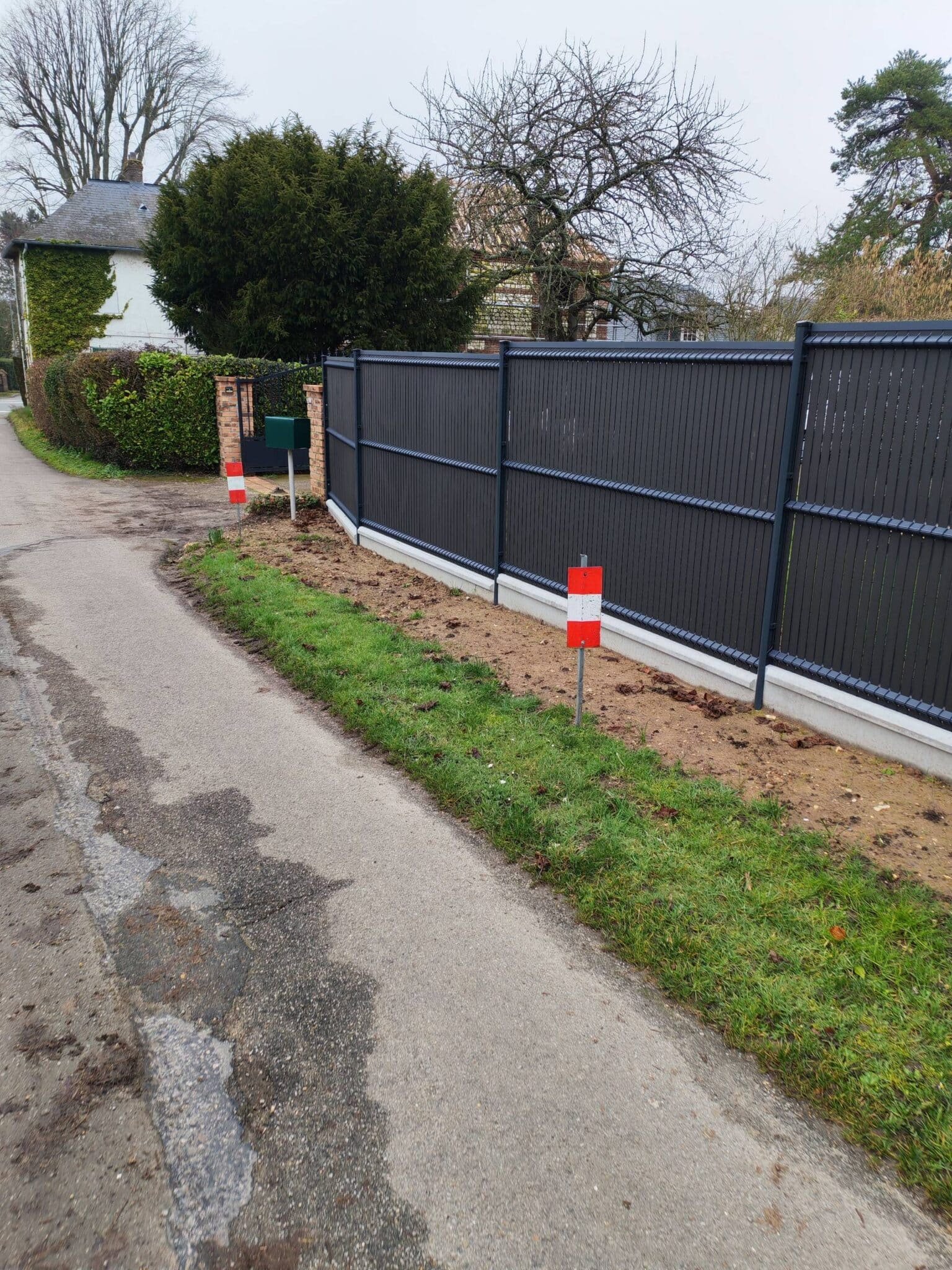Nous réalisons l’installation complète de clôtures en panneaux rigides et palissades avec fondations en béton adaptées au terrain. L’intervention inclut la préparation du chantier, le calage et la fixation des poteaux métalliques, la pose de panneaux occultants ou ajourés selon votre choix, et la réalisation d’une semelle ou longrine en béton lorsque nécessaire pour garantir la stabilité sur bordure de chaussée ou talus. Notre approche artisanale prend en compte la proximité de la voie, la gestion des rigoles et du bandeau végétal, ainsi que l’intégration d’éléments utiles comme un portillon ou la reprise autour d’une boîte aux lettres. En tant qu’artisans paysagistes et terrassement basés à Bourg-Achard, nous coordonnons terrassement léger, nivellement et finition paysagère pour laisser le chantier propre et prêt à être planté ou gazonné selon vos souhaits. Nous adaptons nos interventions selon la nature du sol, la présence d’arbres ou d’ouvrages voisins et les contraintes d’accès, et nous travaillons en respectant les règles locales d’urbanisme.